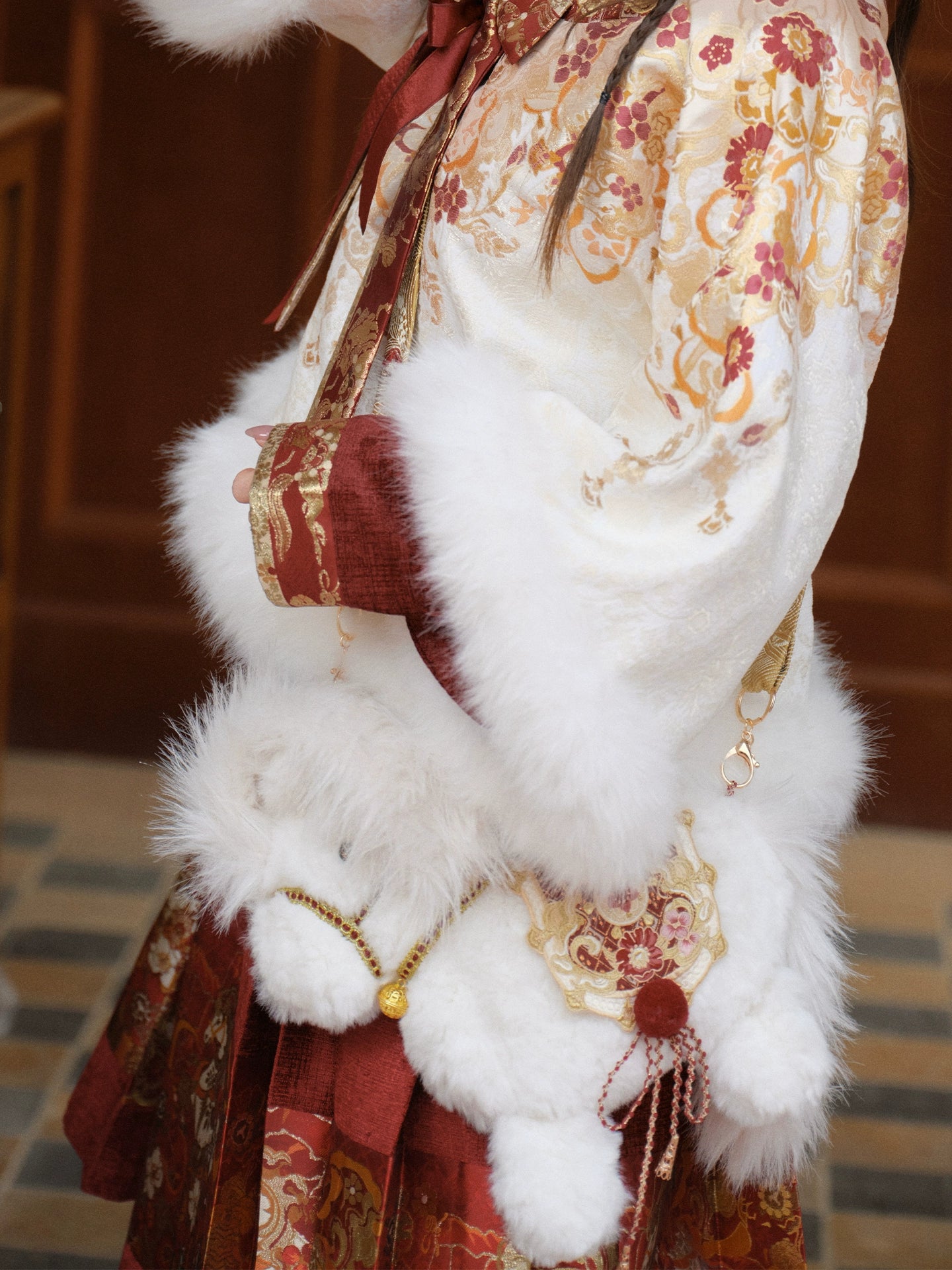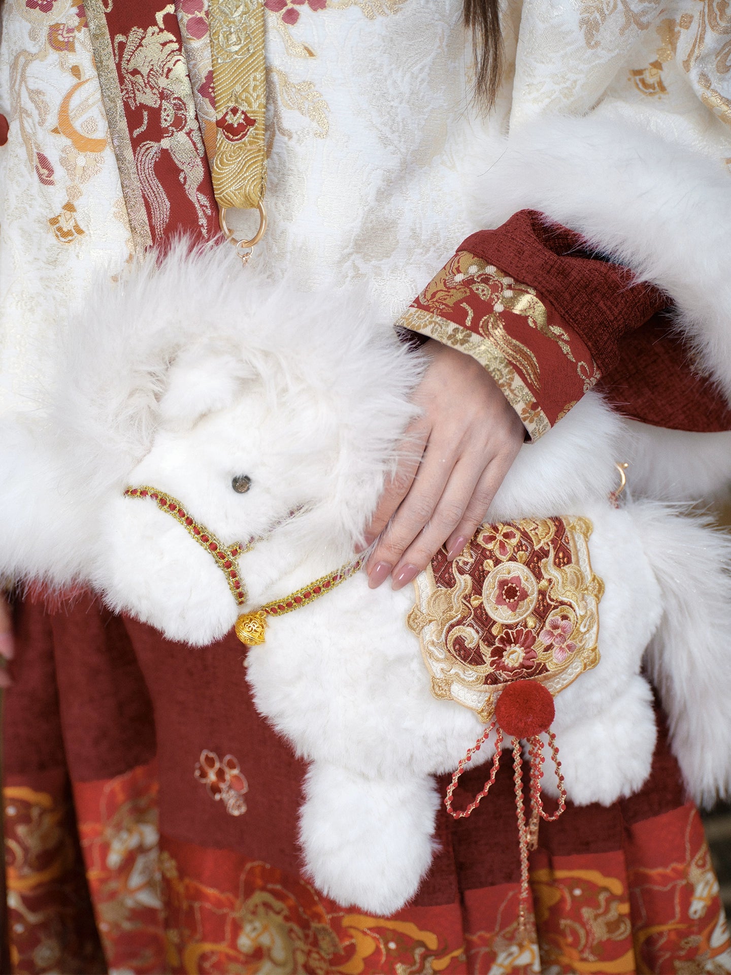 • The fur fabric of the bag body is soft. Please remember to wash it gently by hand when cleaning, and avoid machine washing to prevent damage to metal and other accessories. Please be advised.The ready-made fabrics used for the inner beizi (a traditional Chinese-style jacket), skirt waistband and binding are cut randomly.